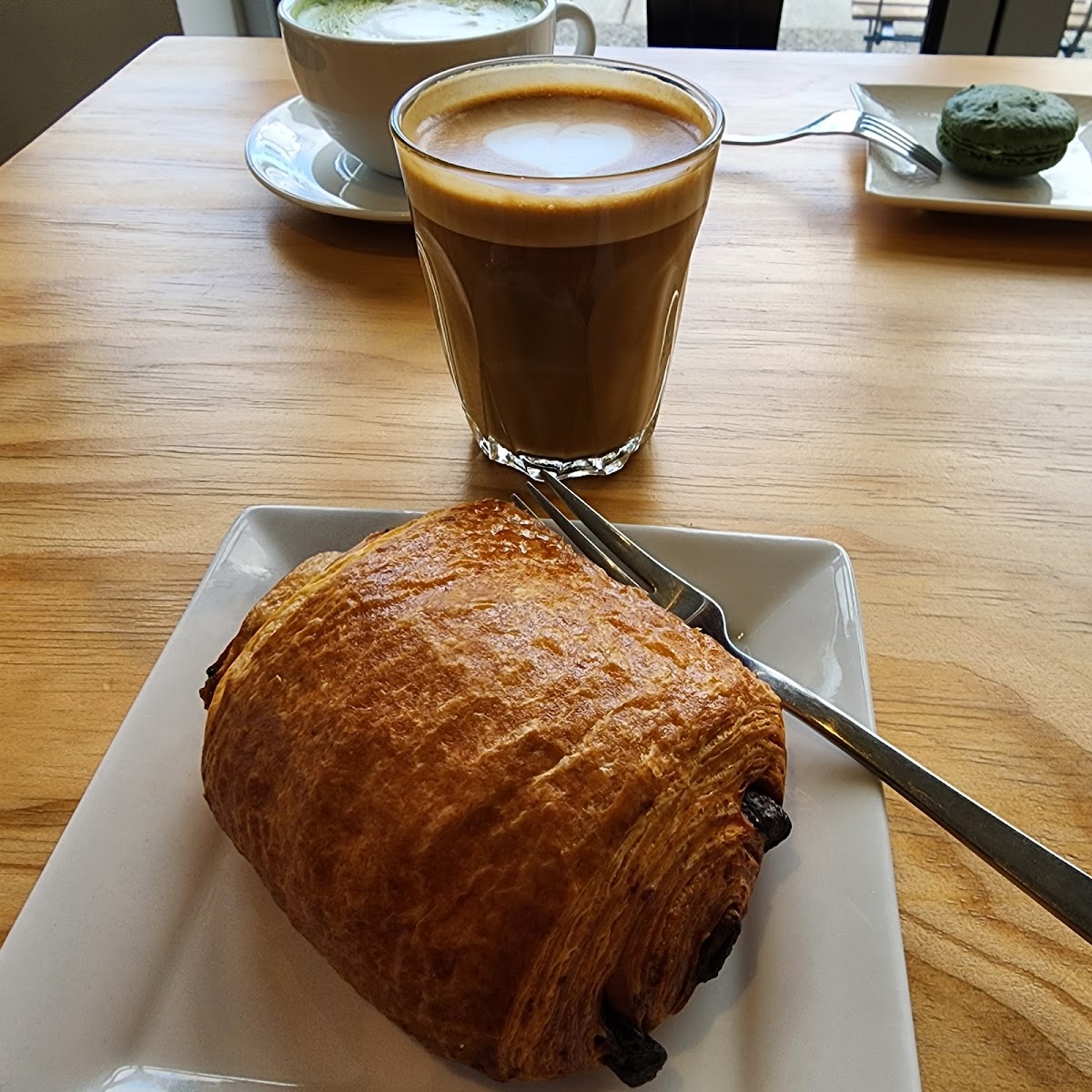 What a cute cafe.. their matcha with almond milk was amazing not too strong not too light but perfect that hits the spot. Dark cafe mocha again with almond milk was so good. But the highlight of the visit was their bakery section, so many options to choose from, each one looking better than the last. Just went with blueberry yogurt pastry, omg it did not disappoint perfectly balanced flavour. Definitely going back to try more coffees and cakes. Ps the girl taking orders was very kind and helpful.